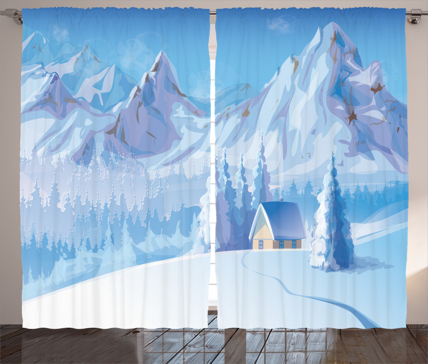 Winter Decorations Curtains 2 Panels Set Little House Below Majestic Mountains In Winter Ice Blizzard Frozen Back Decor Window Drapes For Living Room Bedroom 108w X 84l Inches Blue By Ambesonne
