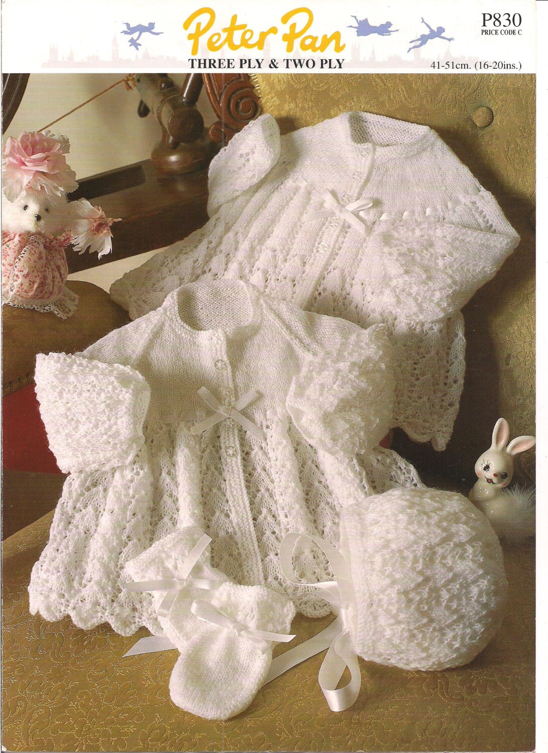 Peter Pan Jacket Bonnet Mitts 3 Ply 2 Ply Baby Knitting Etsy